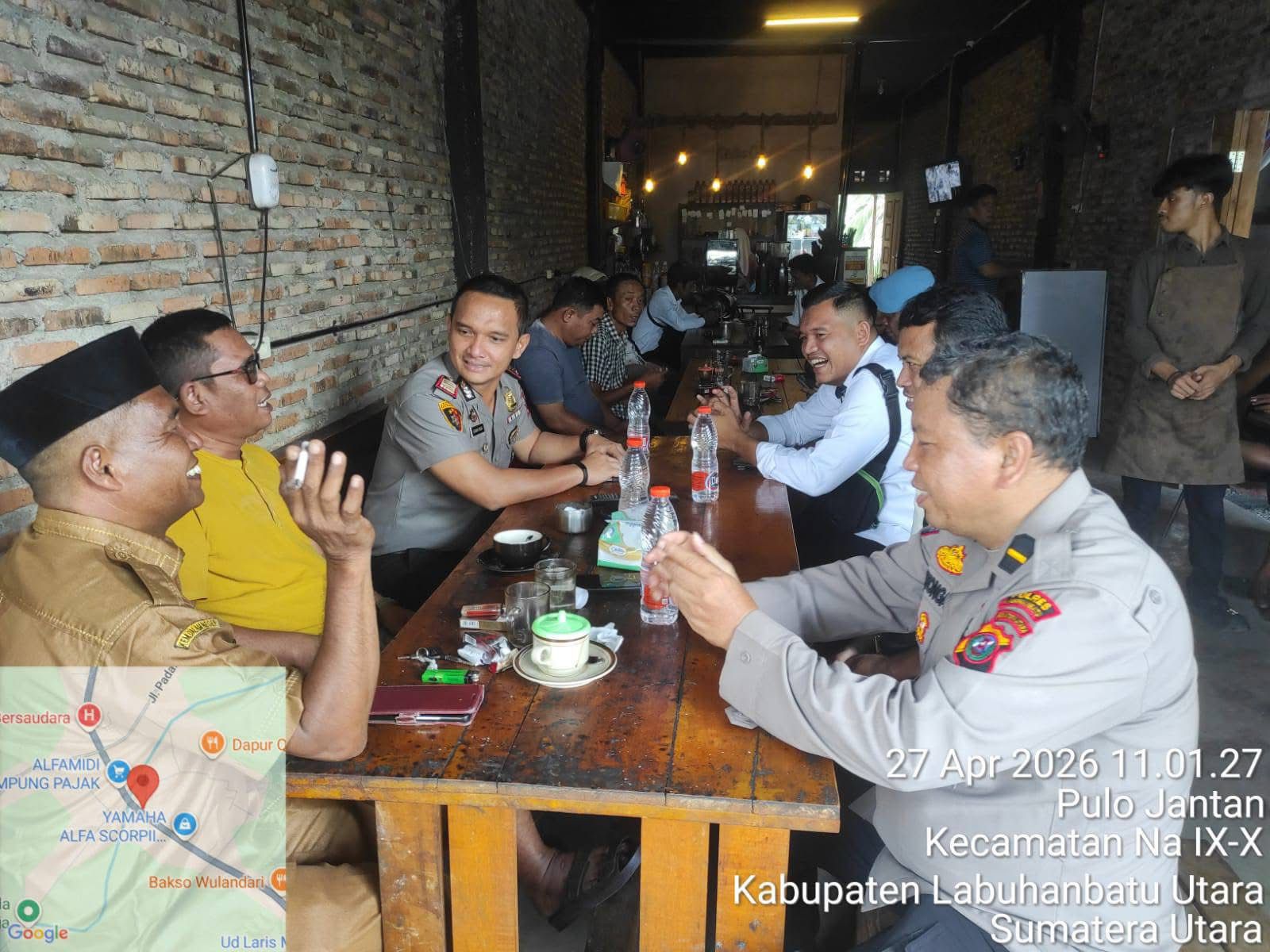 Kapolsek Na IX-X, AKP Gunawan Sinurat, S.H., M.H., bersama Kanit Reskrim IPTU Dr. Iskandar Muda Sipayung, S.H., M.H., M.M., menggelar kegiatan Silaturahmi Kamtibmas dengan para Kepala Desa, Tokoh Agama, Tokoh Masyarakat, dan Tokoh Adat se-wilayah hukum Polsek Na IX-X, Senin (28/4/2026).