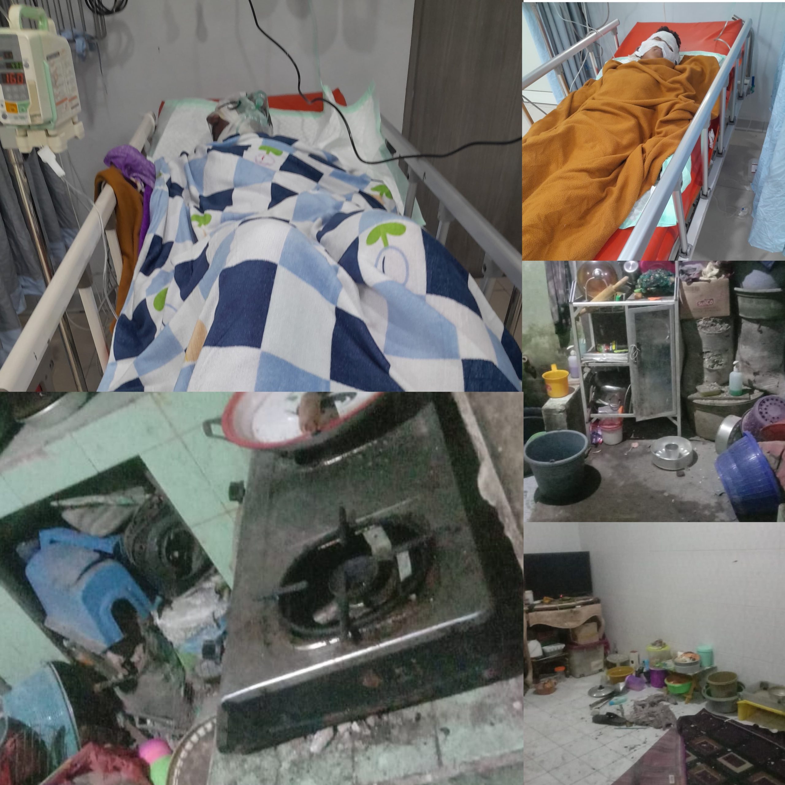 – Yudi Setiawan: Luka bakar serius di tangan, tubuh, dan wajah. Saat ini dalam persiapan operasi di RS Asrama Haji Surabaya.