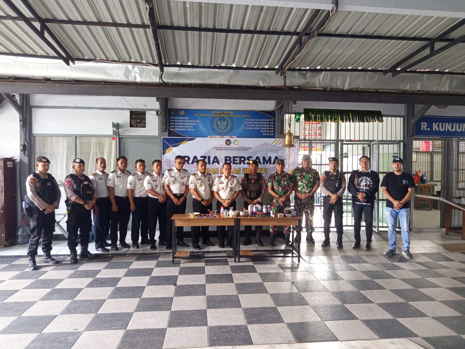 Selain itu, Lapas Kelas IIB Pati juga menggelar razia gabungan bersama TNI dan Polri yang diawali dengan apel bersama. Petugas melakukan penggeledahan secara menyeluruh pada kamar hunian WBP untuk mengantisipasi adanya peredaran barang terlarang. Dari hasil razia tersebut, petugas masih menemukan sejumlah barang terlarang berupa senjata tajam, kartu Remi, dan kompor portabel yang kemudian langsung diamankan guna menjaga keamanan dan ketertiban di dalam lapas.