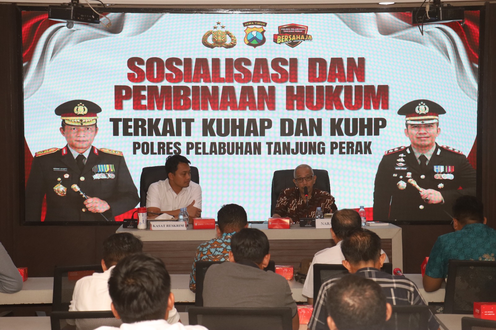 TANJUNG PERAK |Nusantara Jaya News – alam upaya meningkatkan profesionalisme dan sinergitas penegakan hukum di wilayah hukum Pelabuhan Tanjung Perak, jajaran Satreskrim Polres Pelabuhan Tanjung Perak menggelar agenda krusial berupa Sosialisasi dan Pembinaan Hukum terkait Kitab Undang-Undang Hukum Pidana (KUHP) dan Kitab Undang-Undang Hukum Acara Pidana (KUHAP), Kamis (16/4/2026).